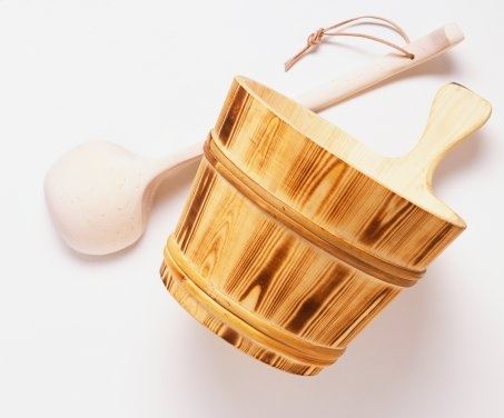 4) On the following occasions you can pour water on the Stones one scoop at a time. Relax and enjoy the heat by sitting or lying on the sauna bench.
